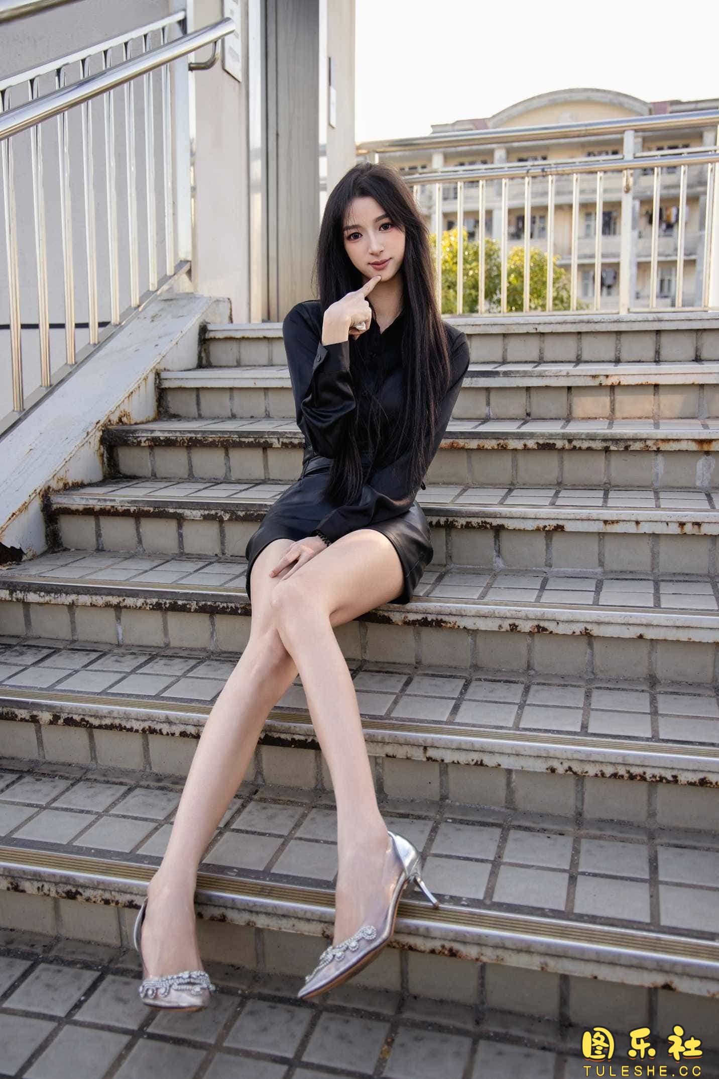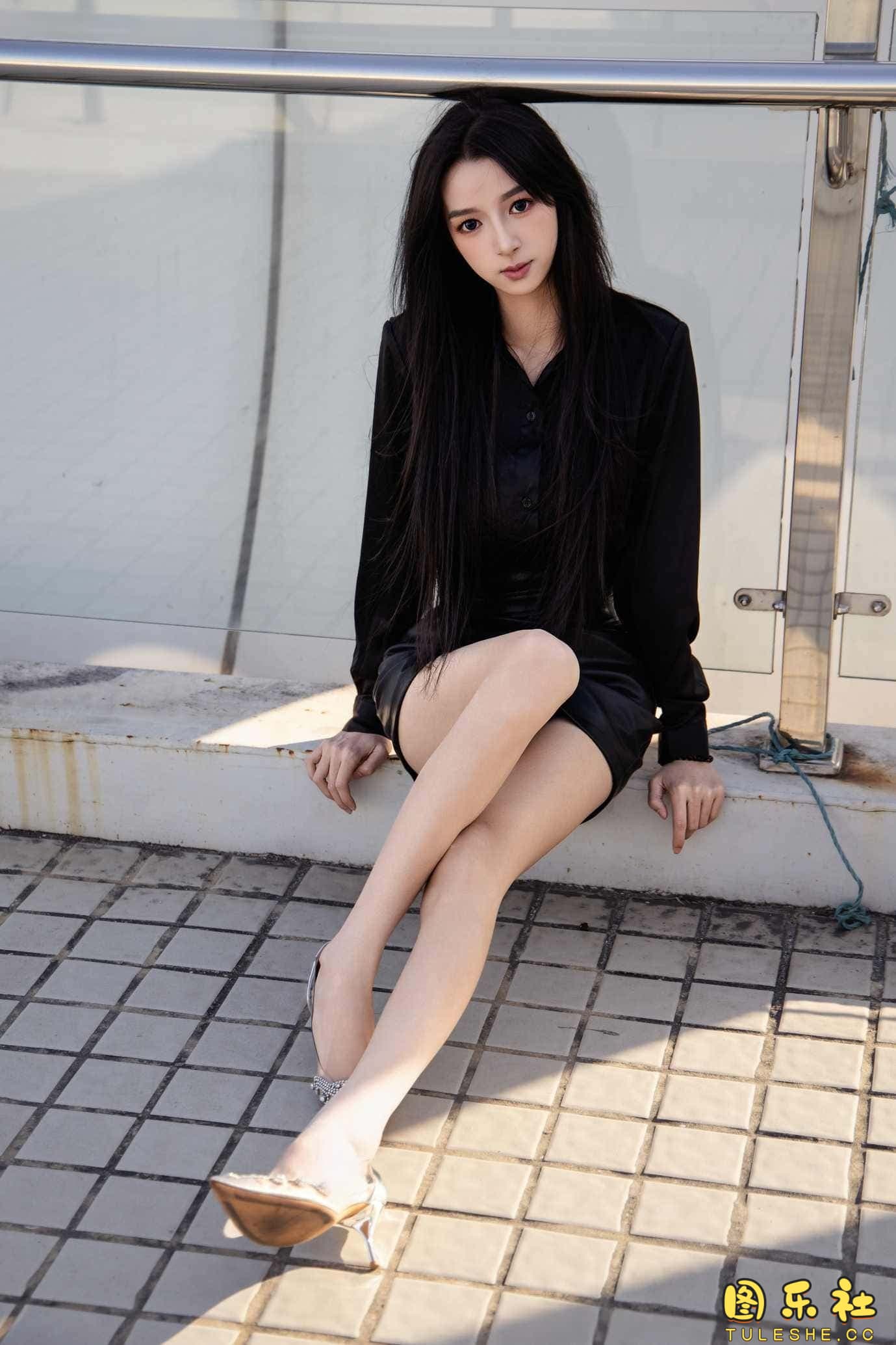 搭配:黑色衬衫、皮裙、高跟鞋、裸足