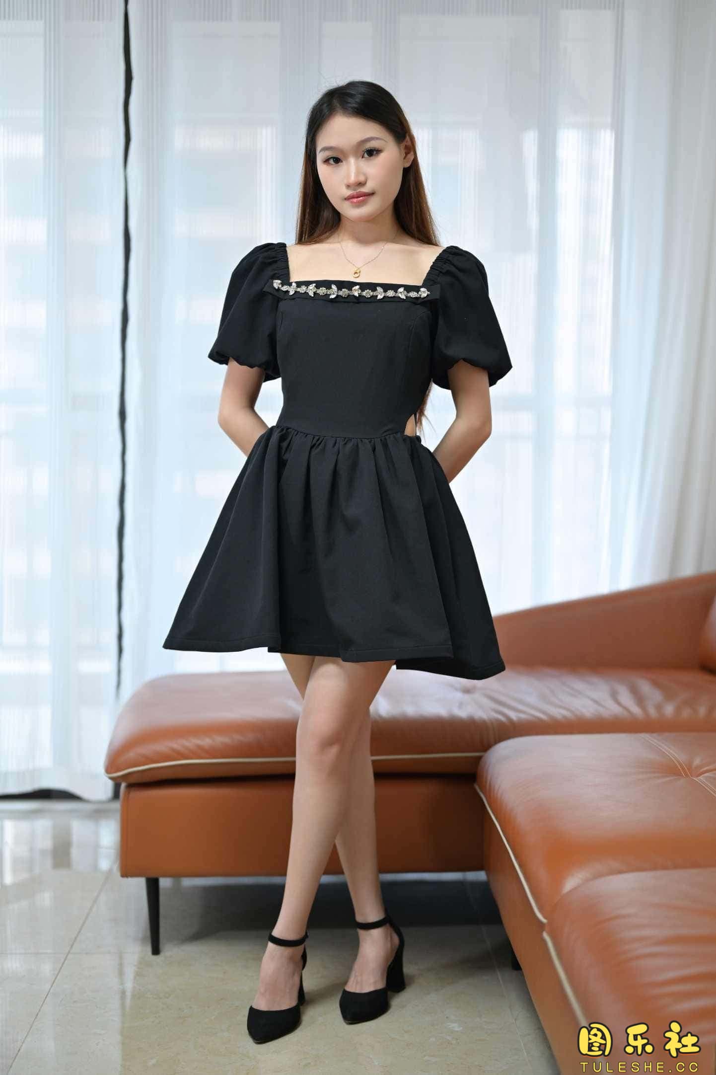 连衣裙、黑丝、高跟鞋
